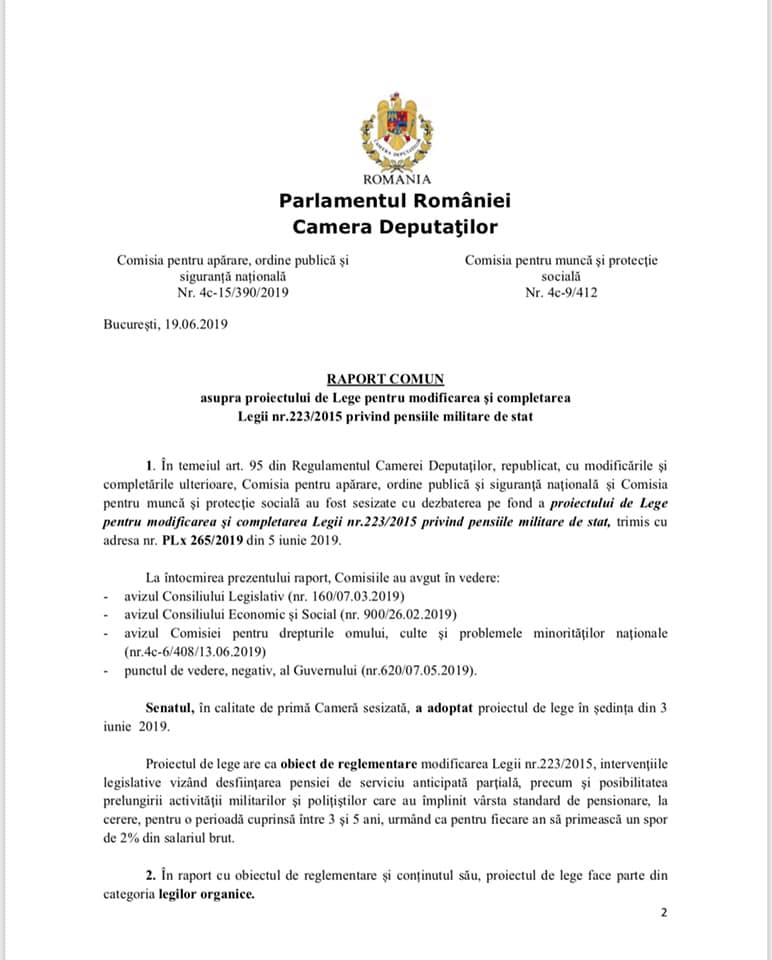🛑 Nu obișnuim să ne uităm în curtea altora, dar întrucât în comisiile anterioare au sărit toate sindicatele că meritul e AL LOR, ne vedem nevoiți să vă prezentăm Raportul Comun asupra proiectului de lege pentru modificarea și completarea Legii nr. 223/2015 privind pensiile militare de stat.