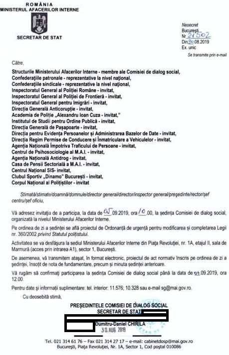 🛑 Astăzi, începând cu ora 10, preşedintele Sindicatului Naţional al Poliţiştilor din România #SNPRDecus – @[100006813004233:2048:Gabriel Nicolae Ivanov] va participa la şedinţa de dialog social de la Ministerul Afacerilor Interne #MAI, pe ordinea de zi aflându-se Proiectul de OUG pentru modificarea și completarea Legii nr. 360/2002 privind Statutul polițistului, anexat mai jos: