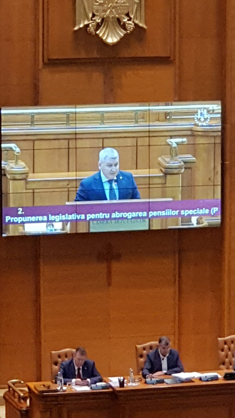 ℹ️ Preşedintele #SNPRDecus, dl. Gabriel-Nicolae IVANOV, care se află în Camera Deputaţilor, ne trasmite că chiar în acest moment încep dezbaterile pe tema propunerii legislative privind eliminarea #pensiilor de serviciu pentru deputaţi şi senatori, judecători şi procurori, personalul auxiliar de specialitate al instanţelor judecătoreşti şi al parchetelor, poliţişti, funcţionari publici cu statut special, funcţionari publici parlamentari, membrilor corpului diplomatic şi consular al României, membrilor Curţii Constituţionale şi a personalului aeronautic civil navigant profesionist din aviaţia civilă din România (Pl-x 292/2019) – lege organică – Respinsă de Senat -19.06.2019.