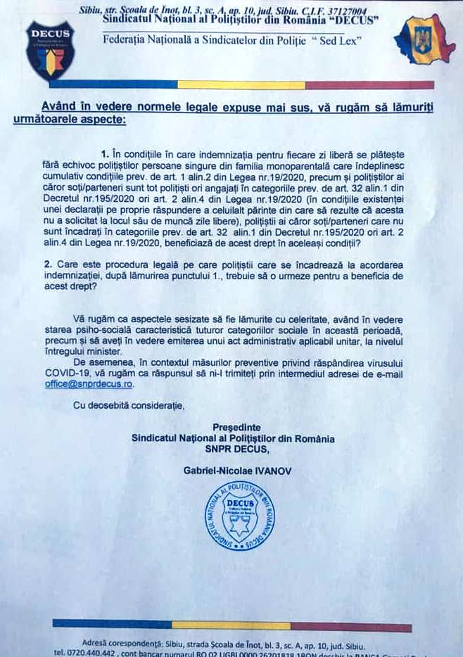 în vederea unei corecte informări a membrilor noştri de sindicat am solicitat Ministerului Afacerilor Interne să emită un punct de vedere care să lămurească aceste aspecte, după cum urmează: