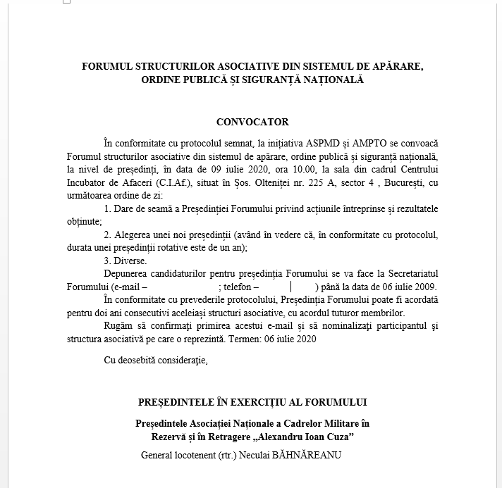 🛑 Mâine, începând cu ora 10.00, la Centrul Incubator de Afaceri din Șos. Olteniței – București, va avea loc Forumul Structurilor Asociative din Sistemul de Apărare, Ordine Publică și Siguranță Națională, la nivel de președinți.
