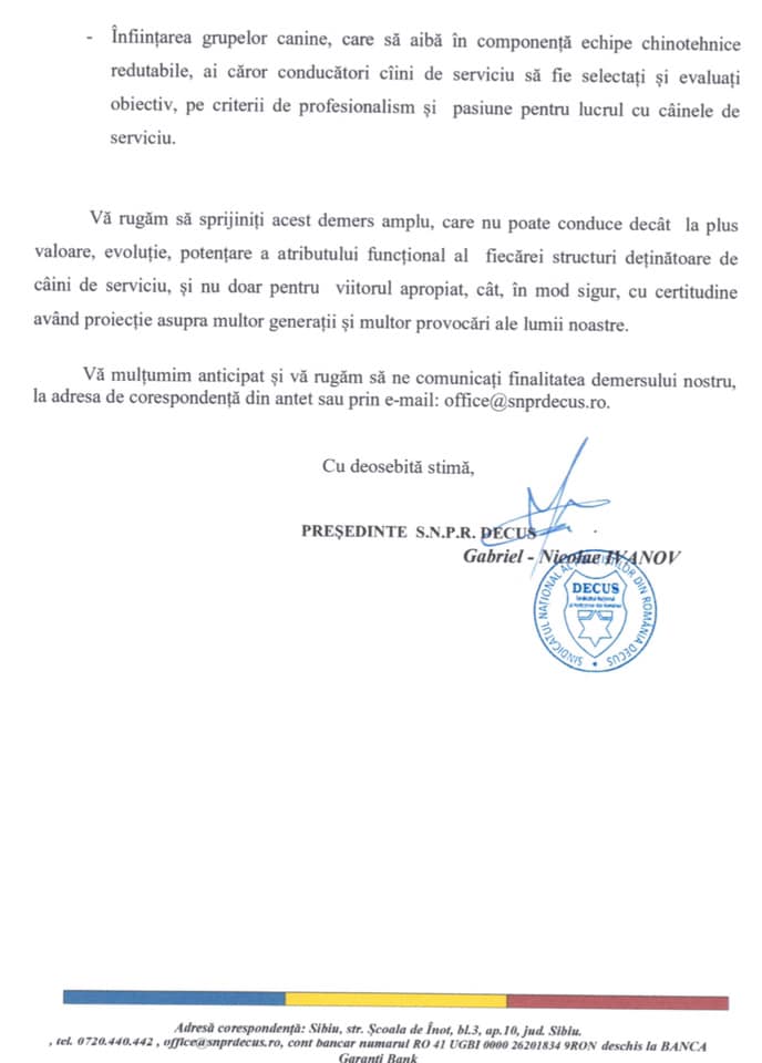 🛑 Pentru că nouă chiar ne pasă de îmbunătățirea condițiilor și a climatului de muncă din fiecare subunitate, după consultarea membrilor de sindicat, am formulat și înaintat către Ministerul Afacerilor Interne o PROPUNERE privind oportunitatea implementării cu celeritate la nivelul M.A.I., a unui mod eficient, eficace și unitar de organizare a activităților desfășurate cu câinii de serviciu, inclusiv a procesului de îngrijire, întreținere și adăpostire a acestora.