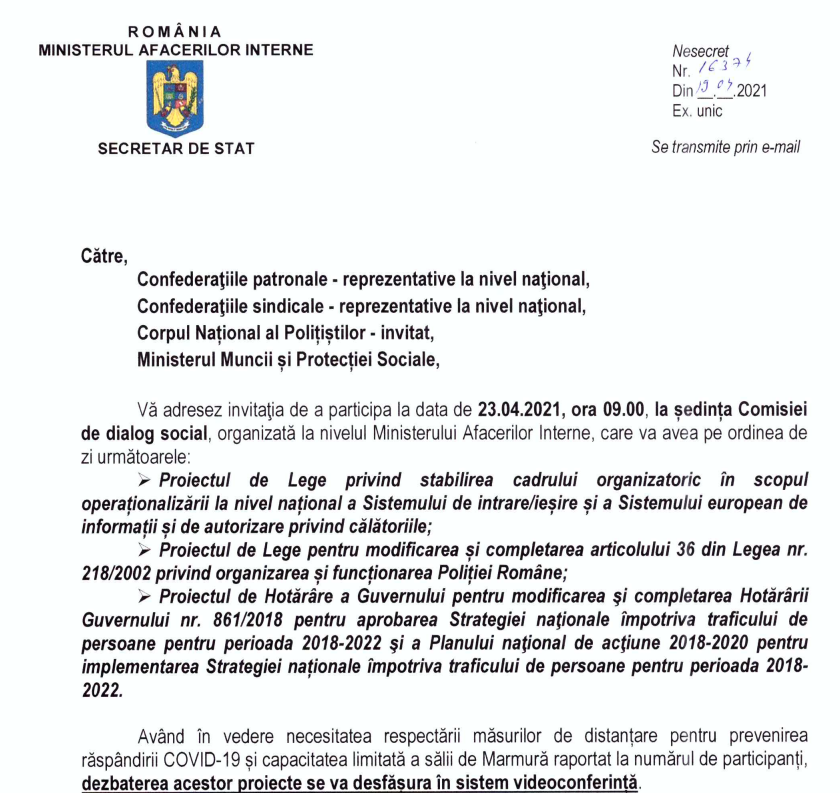 🛑 La această oră se desfășoară în sistem videoconferință ședința Comisiei de Dialog Social constituită la nivelul Ministerului Afacerilor Interne, având pe ordinea de zi modificarea și completarea actelor normative menționate.