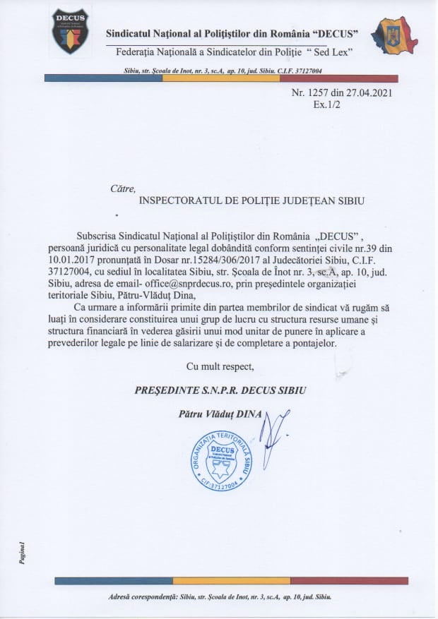 La nivelul IPJ Sibiu, președintele Organizației Județene #DECUS – Vlăduț DINA a solicitat constituirea unui grup de lucru pentru adoptarea unui mod de lucru unitar în acest sens.