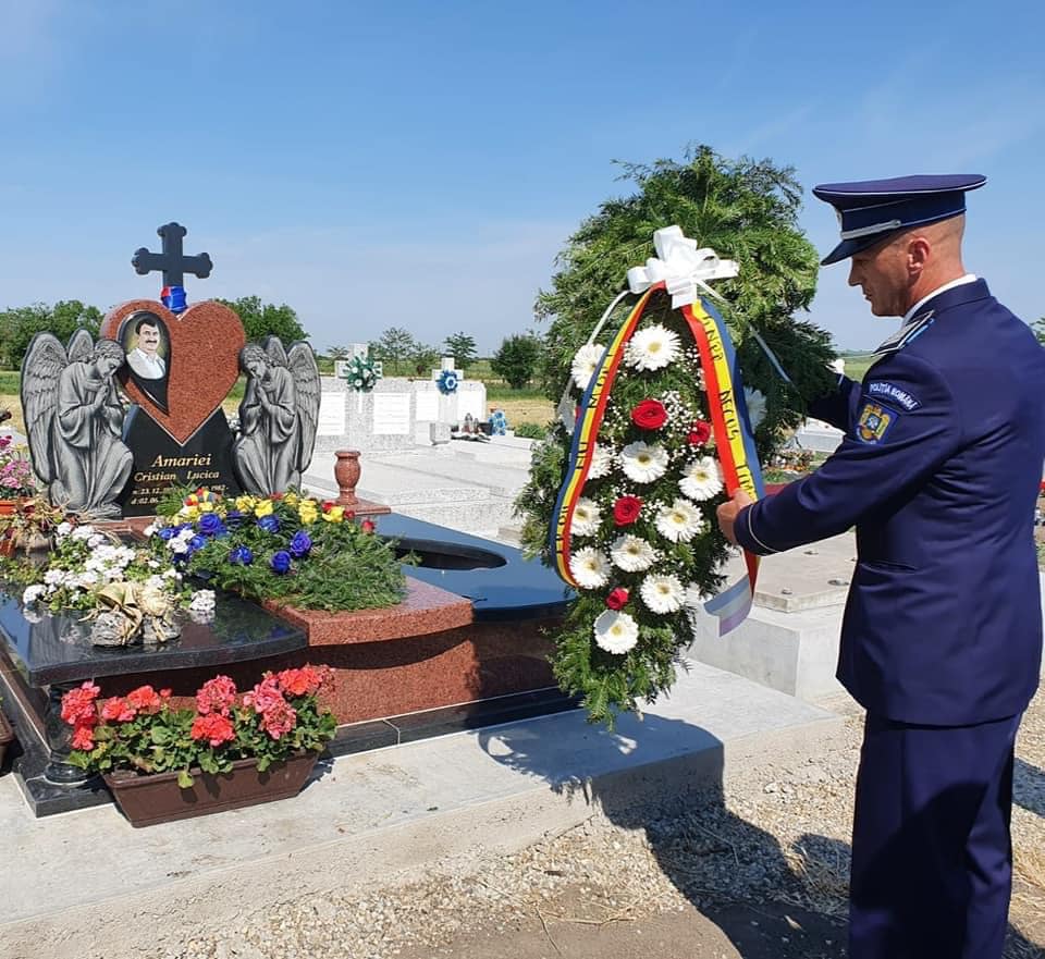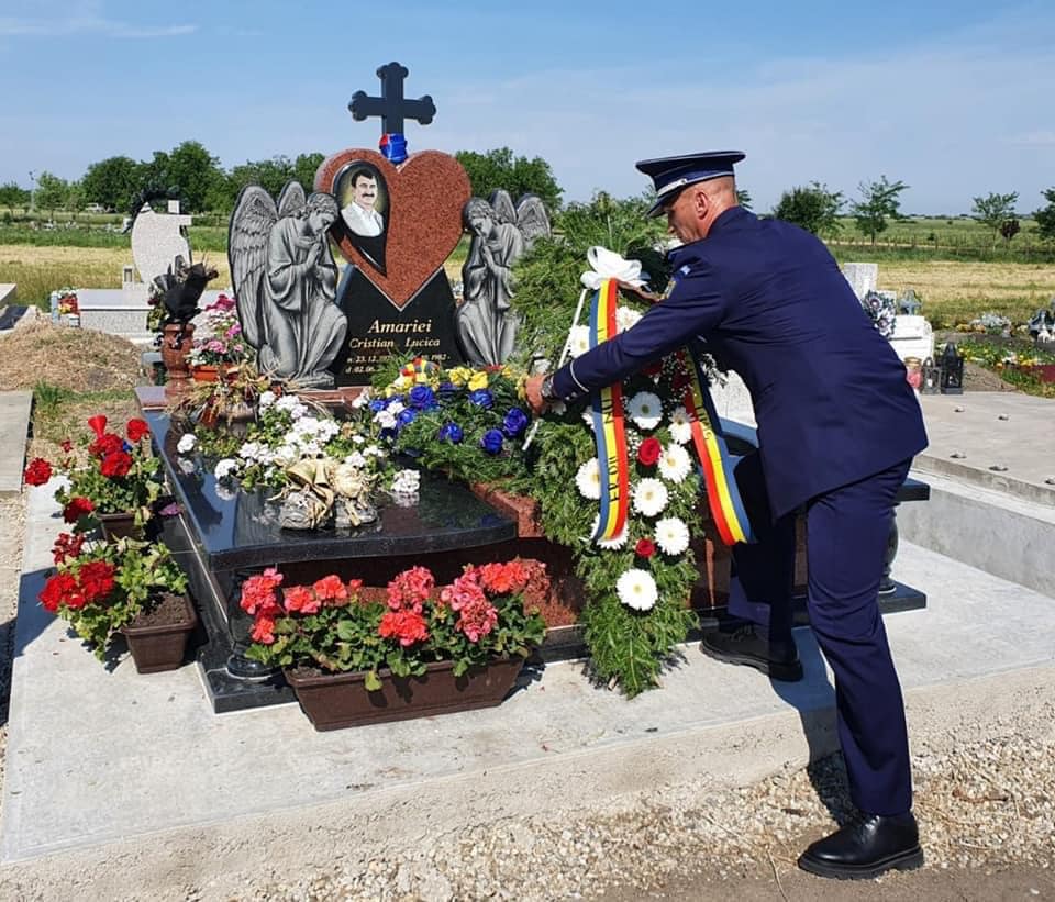 Printre acești oameni minunați care au mărit numărul celor numiți eroi și care au făcut sacrificiul suprem, din nefericire, este și colegul și camaradul nostru subinspector de politie PM Cristian Amariei. Aceasta zi de comemorare a eroilor coincide cu Sfânta zi de Înălțare a Domnului, zi în care Mântuitorul nostru Iisus Hristos s-a ridicat la ceruri de pe Muntele Măslinilor, minune la care îngerii le-au vorbit celor doi Apostoli spunandu-le sa nu fie copleșiți de durerea despărțirii de Mântuitor. Nutrim astfel speranța că eroul nostru Cristian Amariei nu a făcut sacrificiul suprem în van iar noi, cei care ne bucurăm de fiecare zi lângă familiile noastre, sa privim cu pioșenie și compasiune spre familia acestuia.