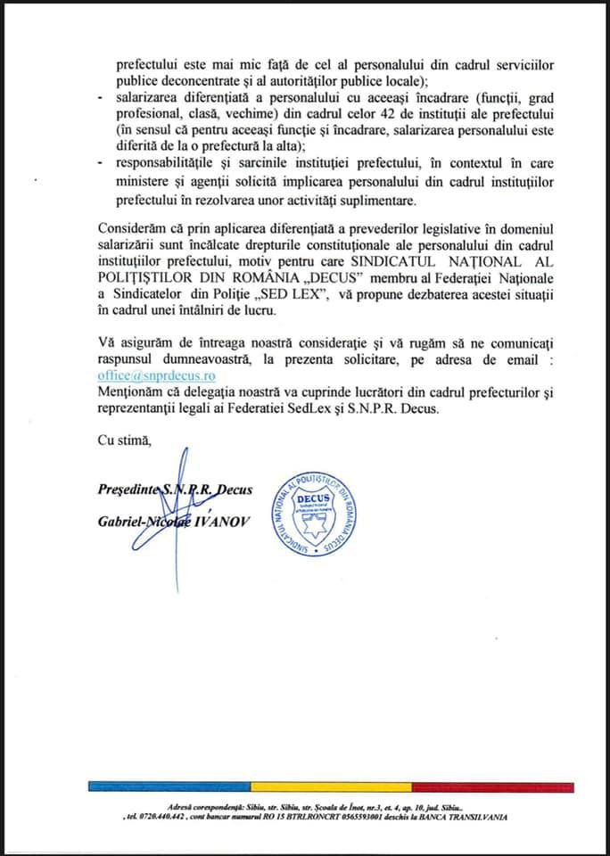 🛑 Considerăm că prin aplicarea diferențiată a prevederilor legislative în domeniul salarizării sunt încălcate drepturile constituționale ale angajaților din cadrul Instituțiilor Prefectului și sperăm la găsirea unor soluții pe calea dialogului social în vederea eliminării acestor discrepanțe.