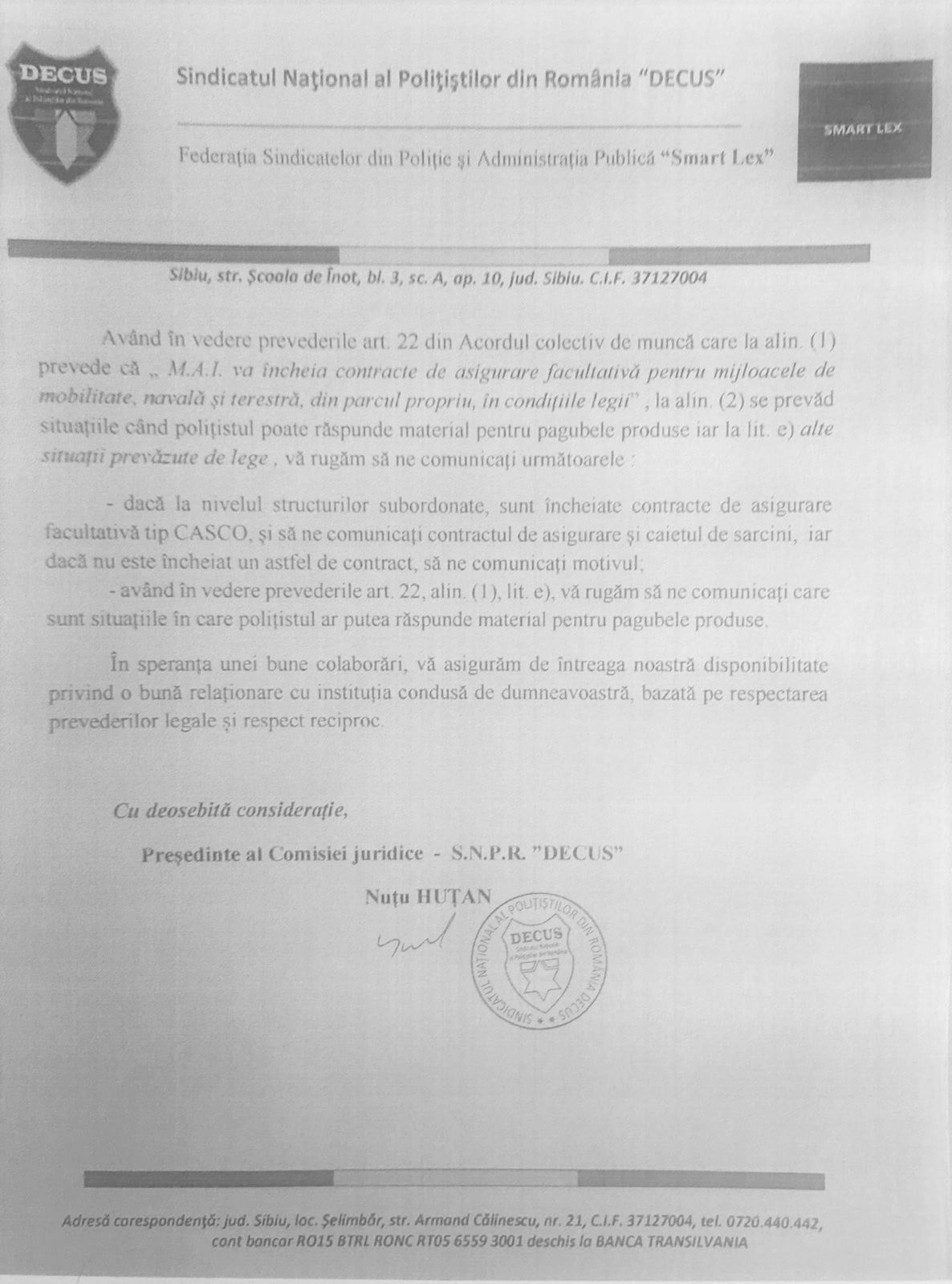 (…) vă rugăm să ne comunicați dacă la nivelul structurilor subordonate sunt încheiate contracte de asigurare facultativă CASCO.