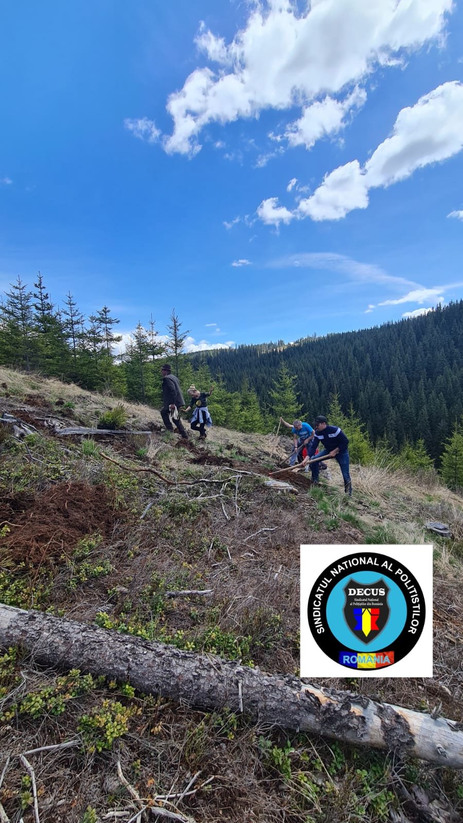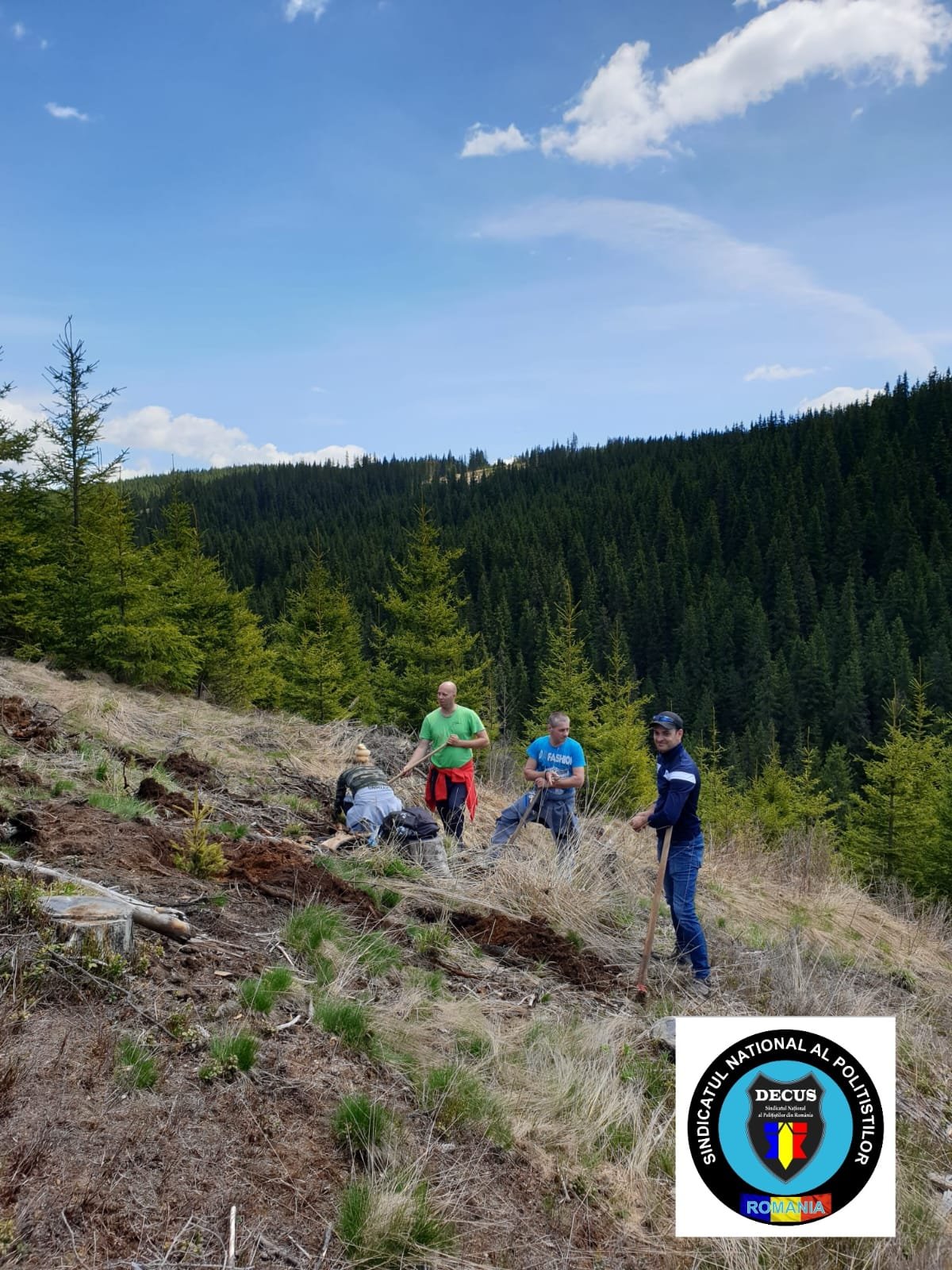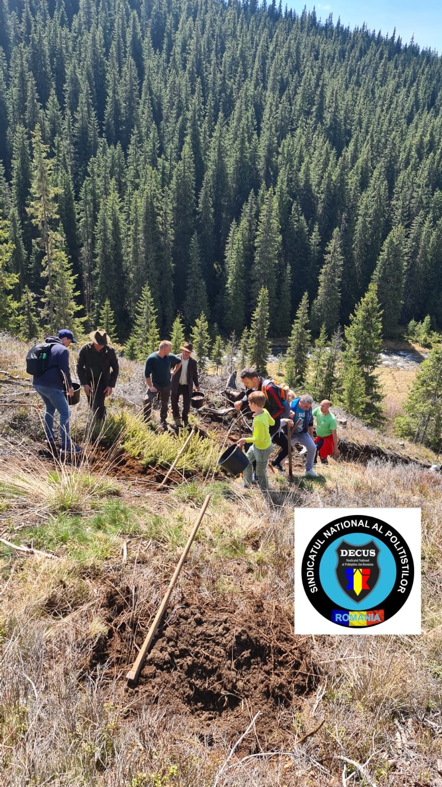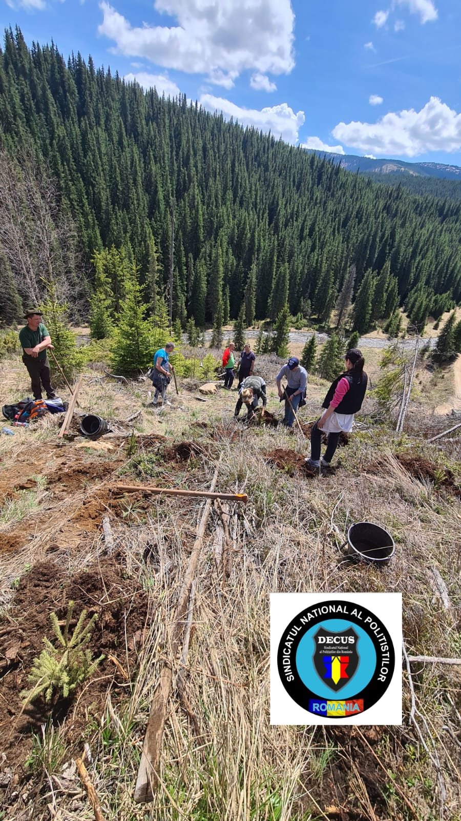 În acest weekend, membrii Sindicatului Național al Polițiștilor din România #DECUS au participat la o acțiune de împădurire în zona Oașa-Valea Frumoasei din jud. Sibiu, fiind plantați aproximativ 500 de puieți forestieri puși la dispoziție de Direcția Silvică Sibiu – Ocolul Silvic Mirecurea Sibiului.