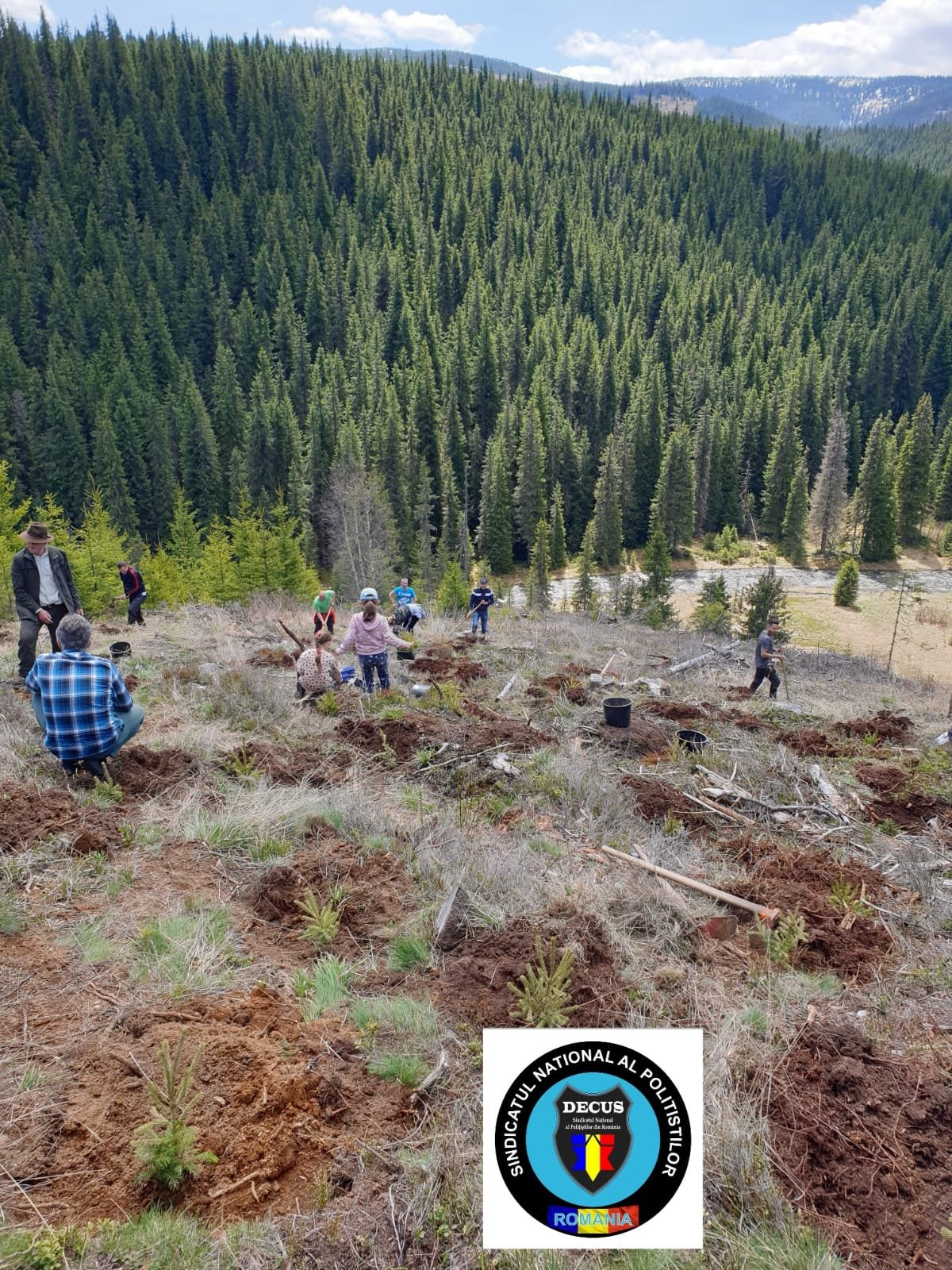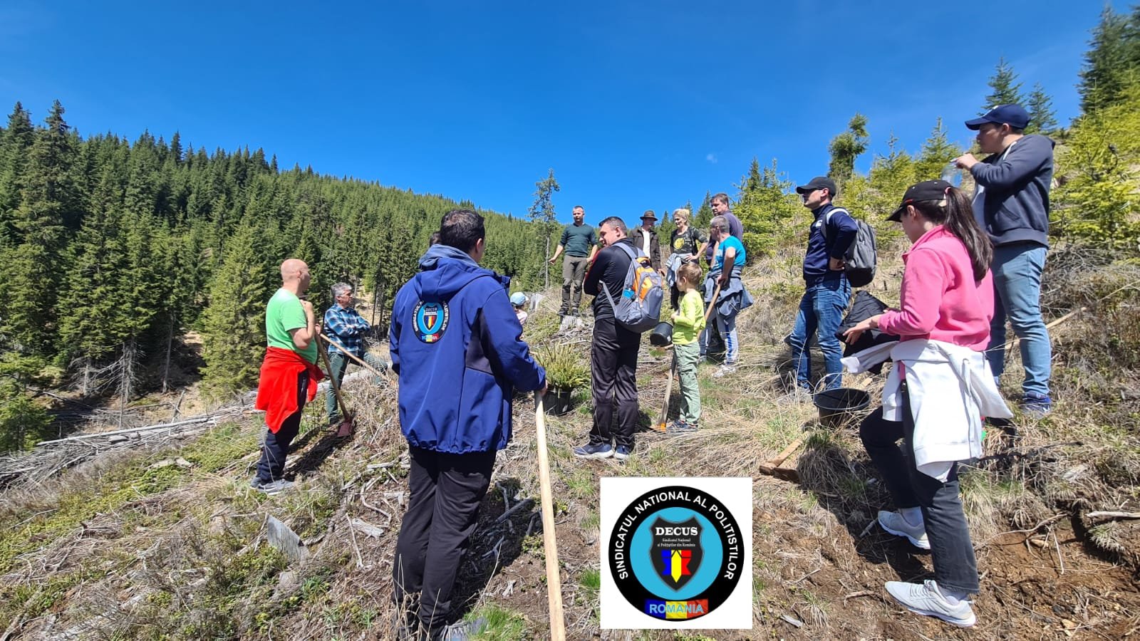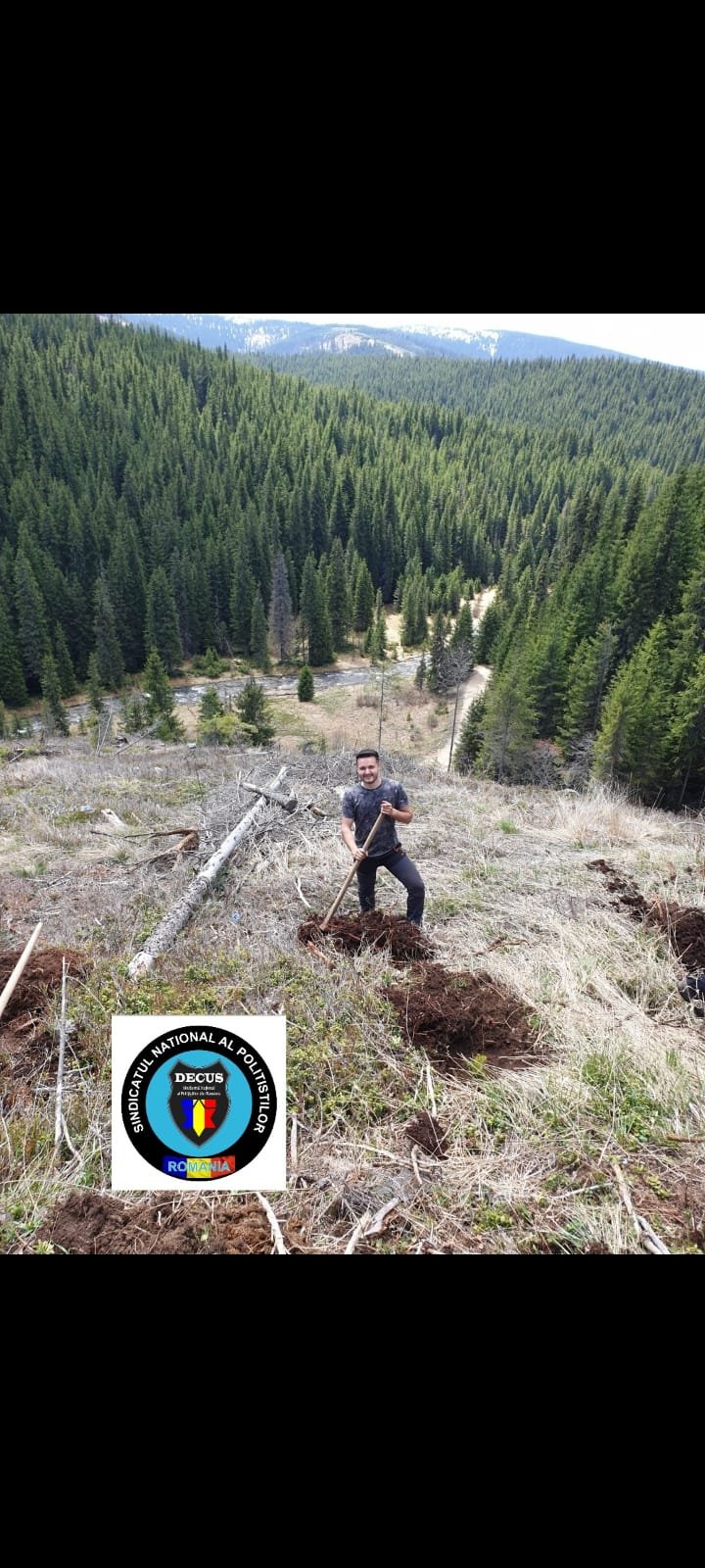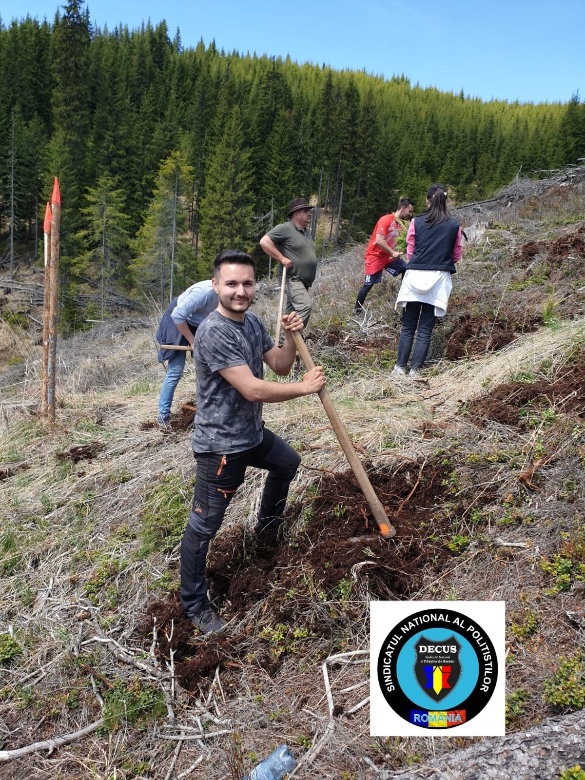 În acest weekend, membrii Sindicatului Național al Polițiștilor din România #DECUS au participat la o acțiune de împădurire în zona Oașa-Valea Frumoasei din jud. Sibiu, fiind plantați aproximativ 500 de puieți forestieri puși la dispoziție de Direcția Silvică Sibiu – Ocolul Silvic Mirecurea Sibiului.