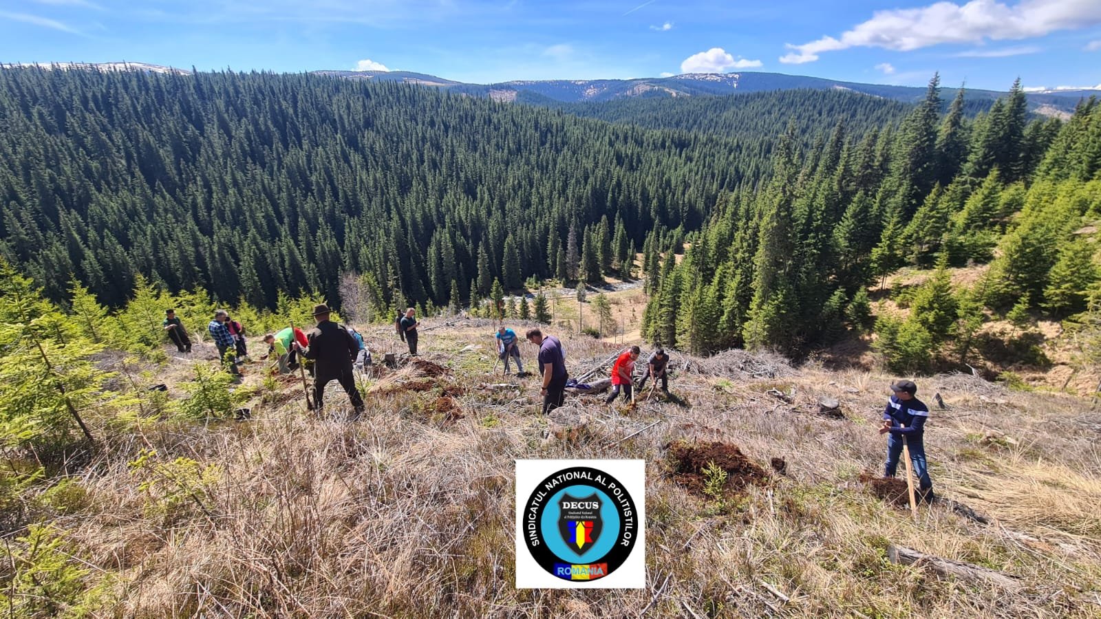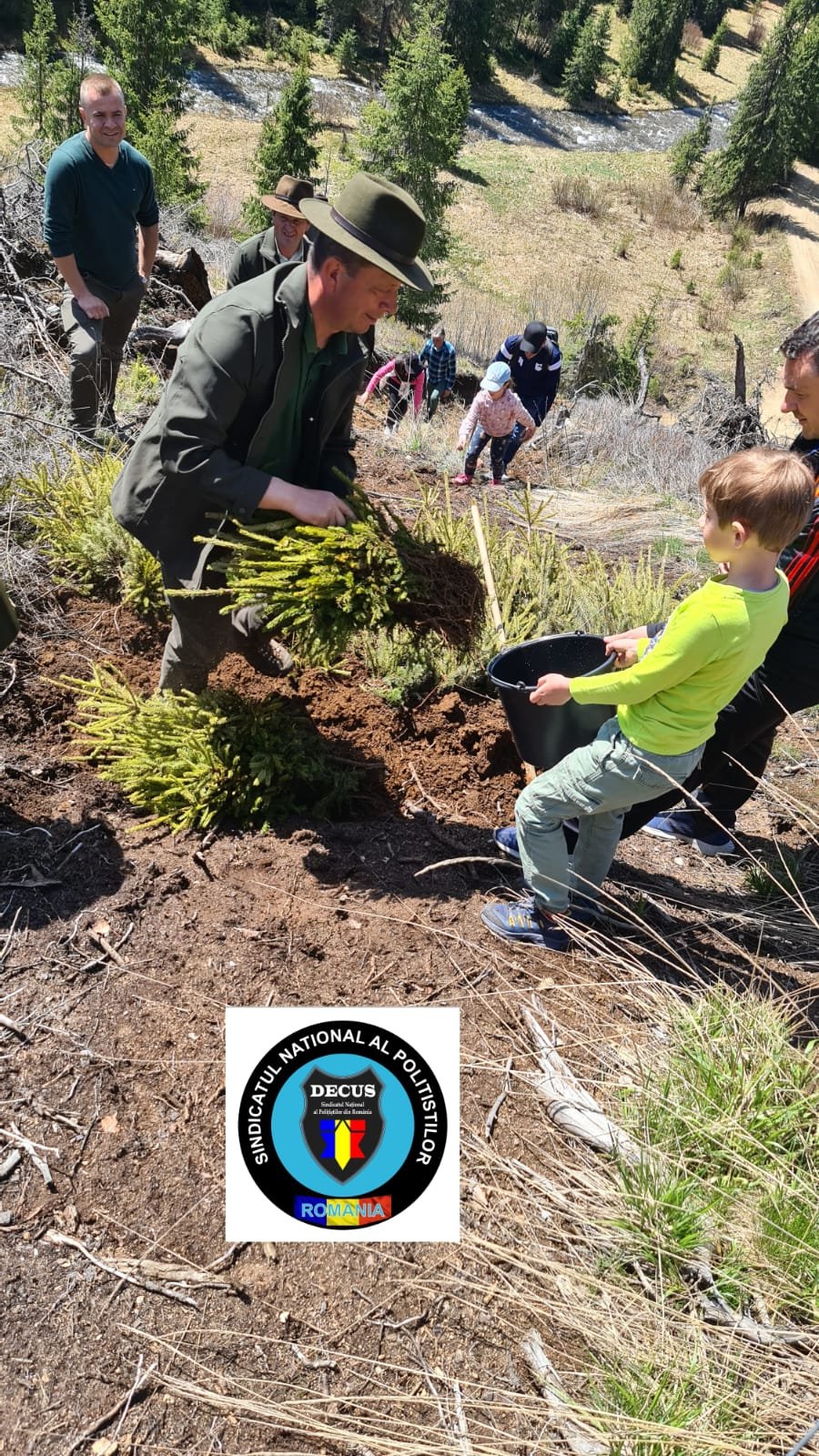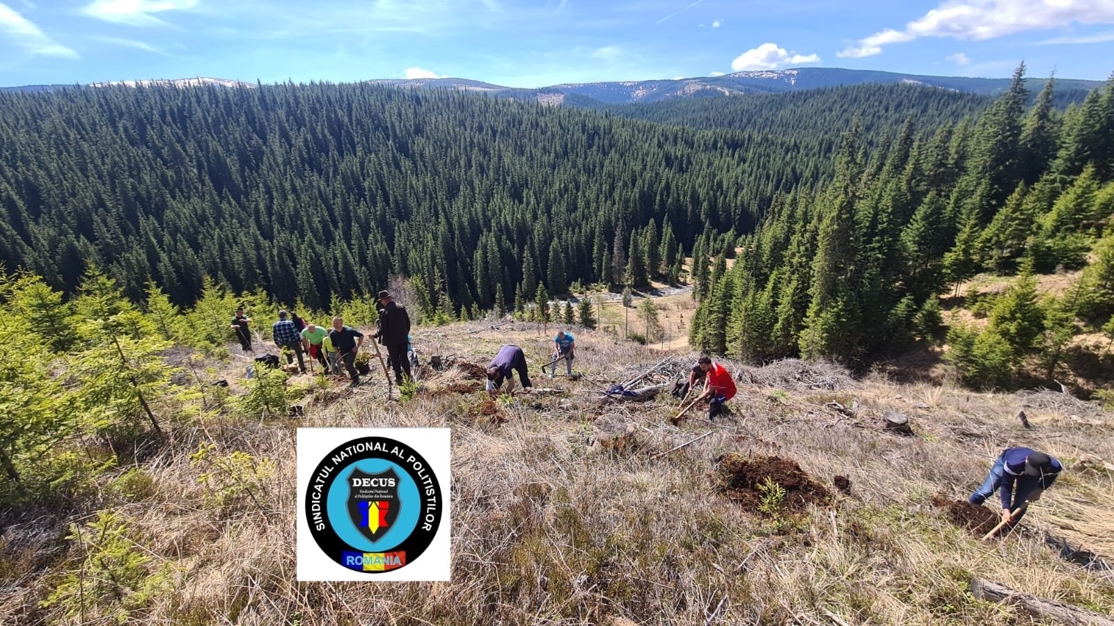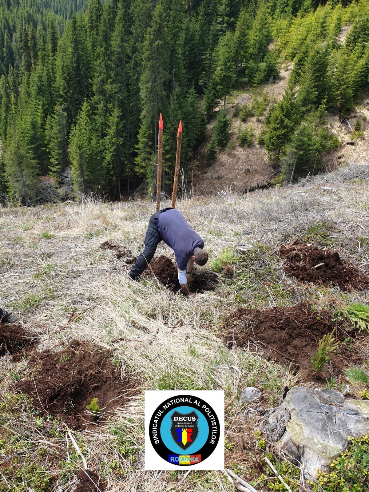În acest weekend, membrii Sindicatului Național al Polițiștilor din România #DECUS au participat la o acțiune de împădurire în zona Oașa-Valea Frumoasei din jud. Sibiu, fiind plantați aproximativ 500 de puieți forestieri puși la dispoziție de Direcția Silvică Sibiu – Ocolul Silvic Mirecurea Sibiului.