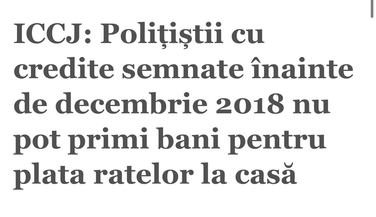 Astfel, polițiștii cu contracte de credit ipotecar ori imobiliar încheiate înainte de această dată nu pot beneficia de bani pentru plata ratelor la creditele pentru casă, potrivit ICCJ.