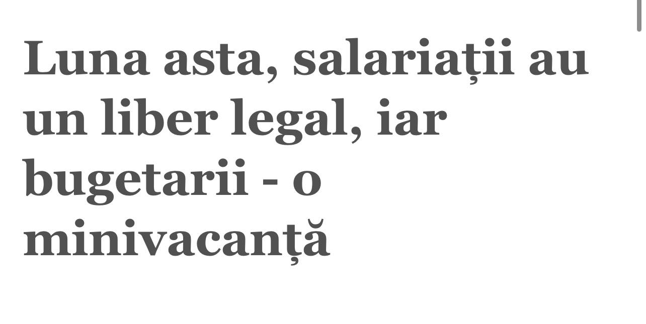 În cazul bugetarilor, însă, inclusiv 14 august este o zi liberă (în majoritatea cazurilor), așa cum a stabilit Guvernul, prin HG 1.555/2022, încă de la finalul anului trecut. Totuși, bugetarii trebuie să recupereze această zi liberă suplimentară, până la 31 august, prin prelungirea programului zilnic de muncă.