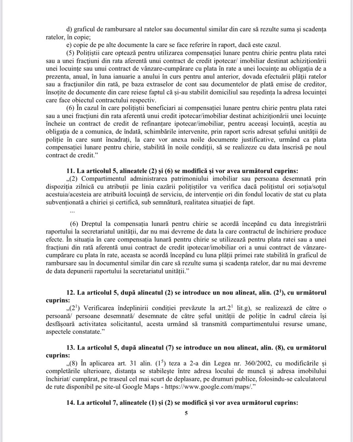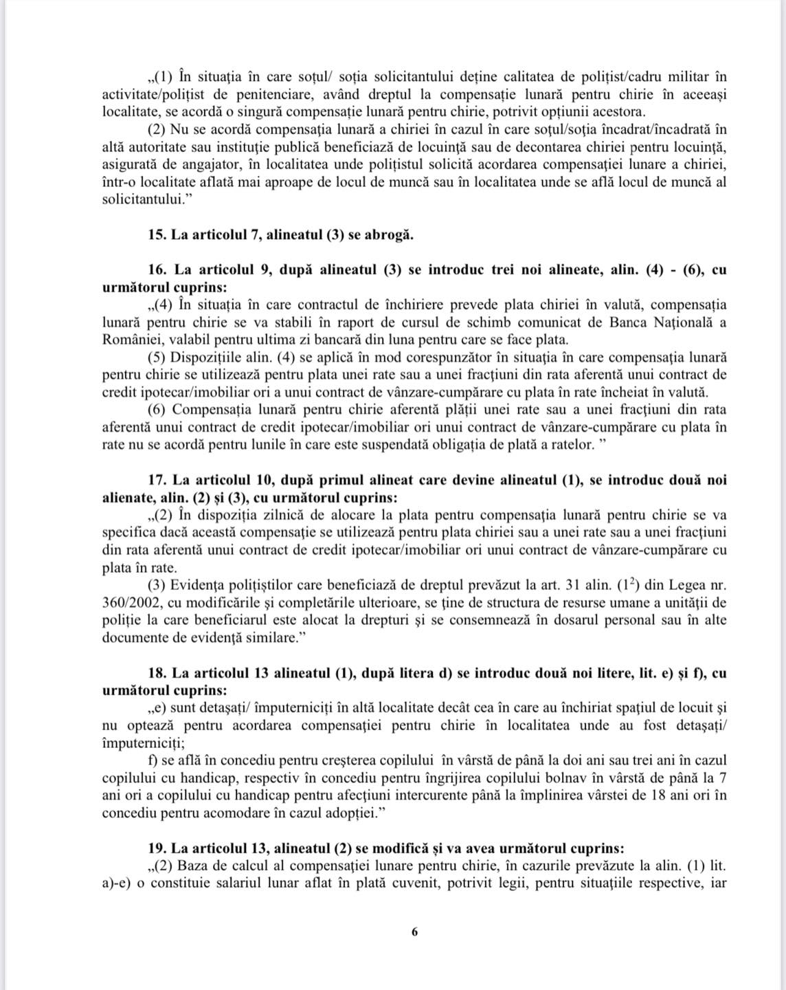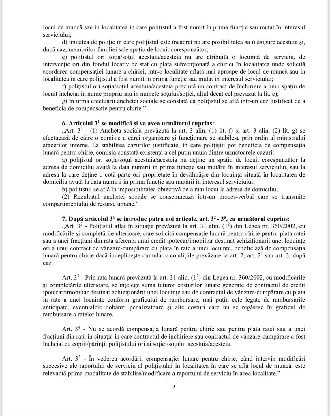Printre aspectele semnalate de către CNSLR Frăția se regăsește introducerea tezei a doua a literei g) punctul 4, care vizează condiționarea acordării compensației pentru chirie. Conform acestei modificări, polițiștii nu ar urma să beneficieze de compensație dacă “deplasarea de la domiciliu la locul de muncă nu permite îndeplinirea atribuțiilor de serviciu”. Sindicatul a subliniat că această formulare este susceptibilă de interpretări subiective și poate conduce la potențiale abuzuri.
