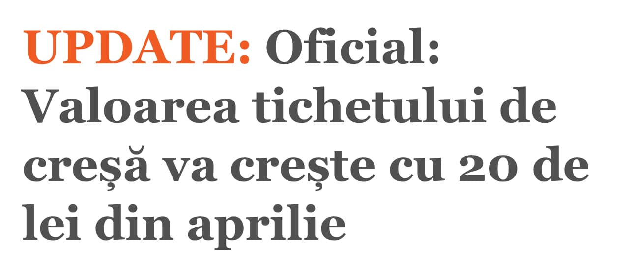 Din aprilie va opera majorarea valorii tichetului de creșă cu 20 de lei, tichetul ajungând la 640 lei lunar, potrivit ordin publicat joi în Monitorul Oficial