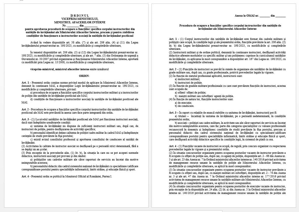 La Ministerul Afacerilor Interne a avut loc astăzi ședința Grupului de Dialog Social, având pe ordinea de zi Proiectul OMAI pentru aprobarea procedurii de ocupare a funcțiilor specifice corpului instructorilor din unitățile de învățământ ale MAI, precum și pentru stabilirea condițiilor de funcționare a instructorilor asociați în unitățile de învățământ postliceal, condusă de secretarul de stat Romeo Simionescu.
